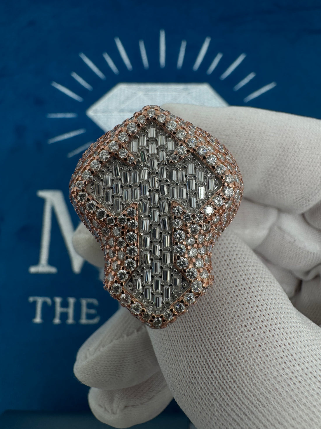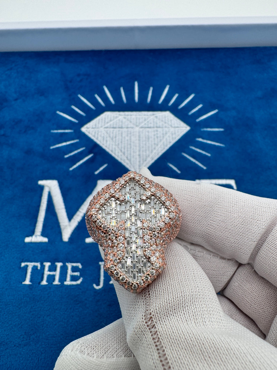 VVS1 Moissanite Cross Ring – Rose & White Gold Plated (.925 Sterling Silver) ...
