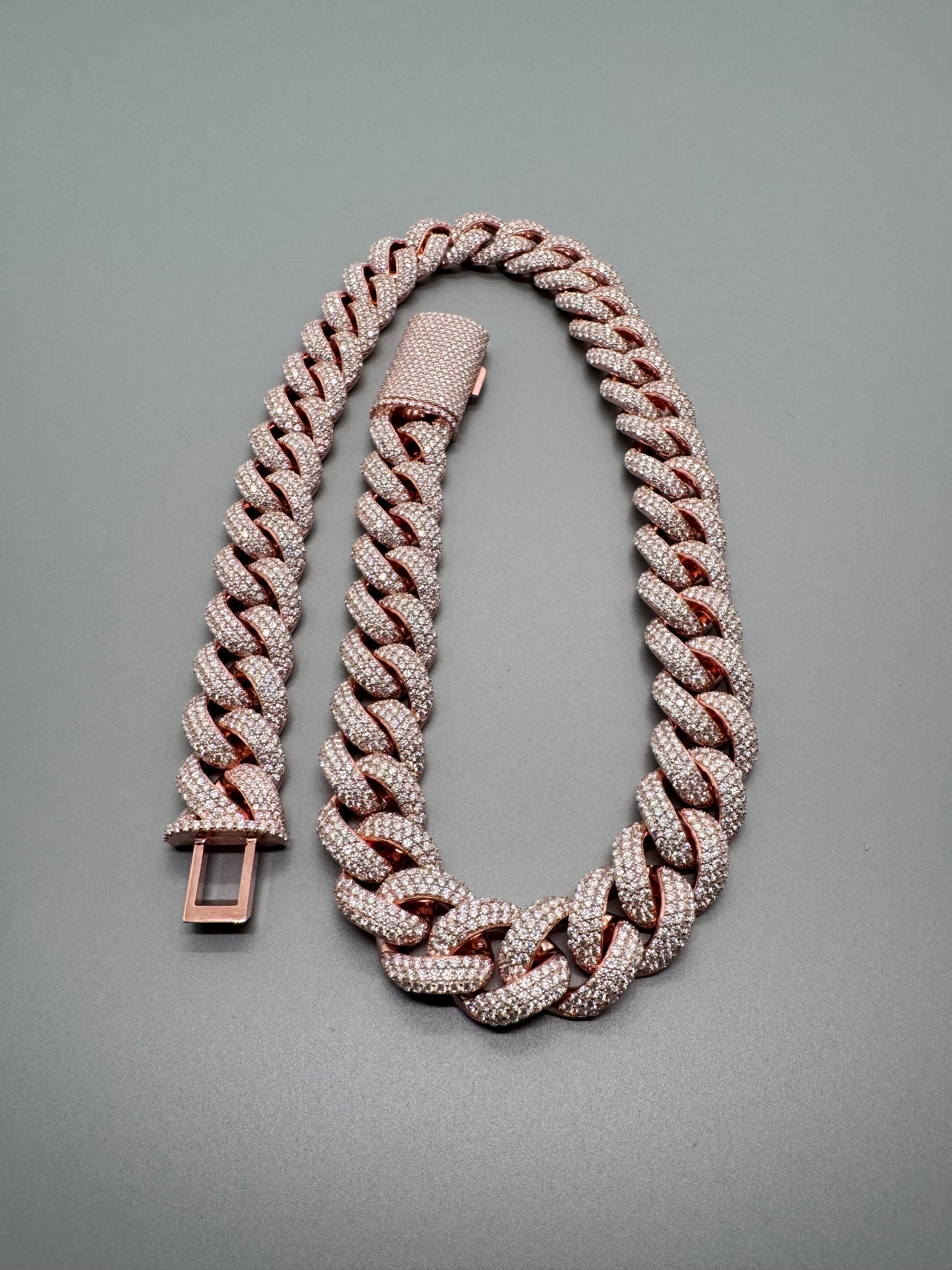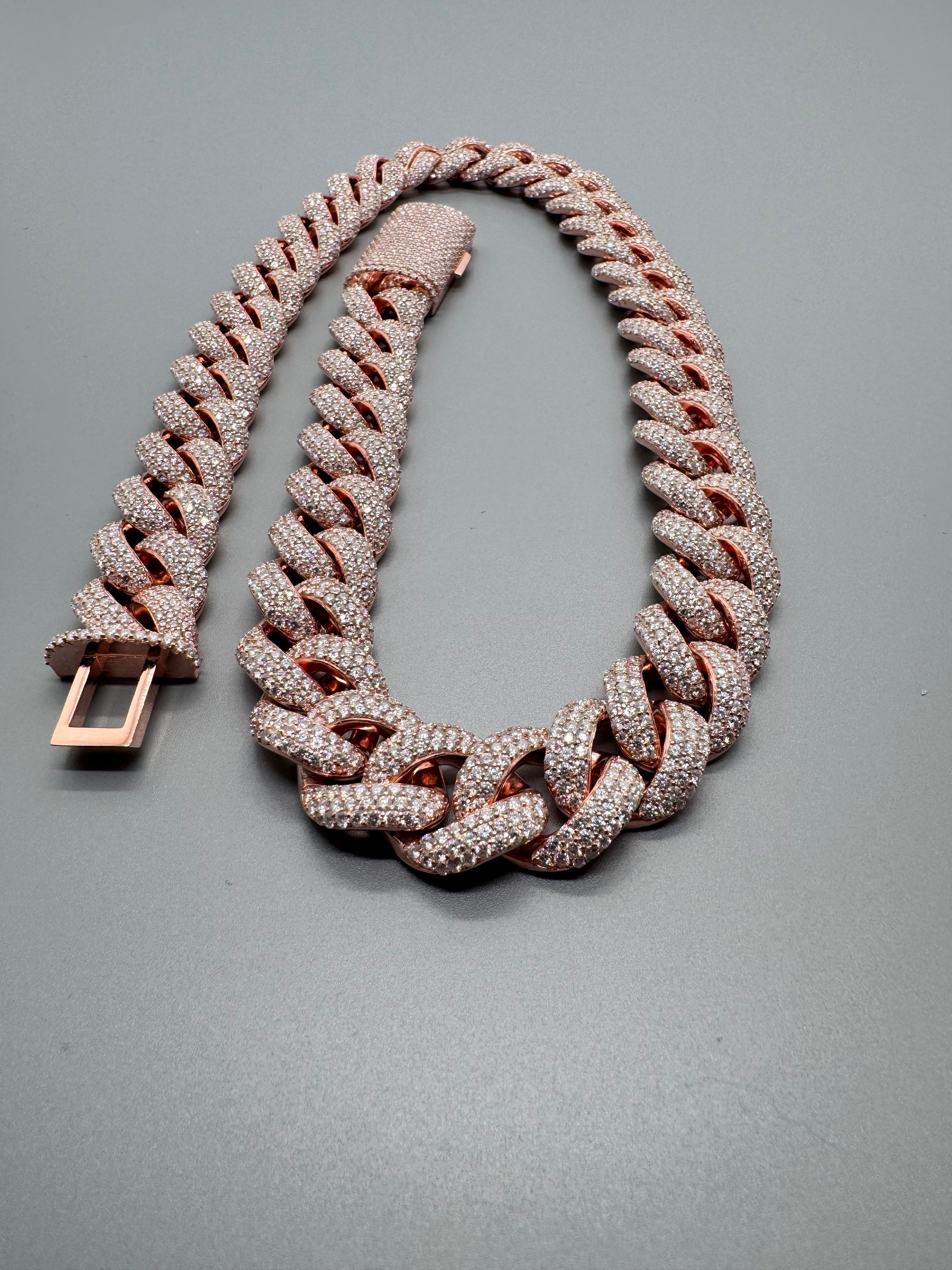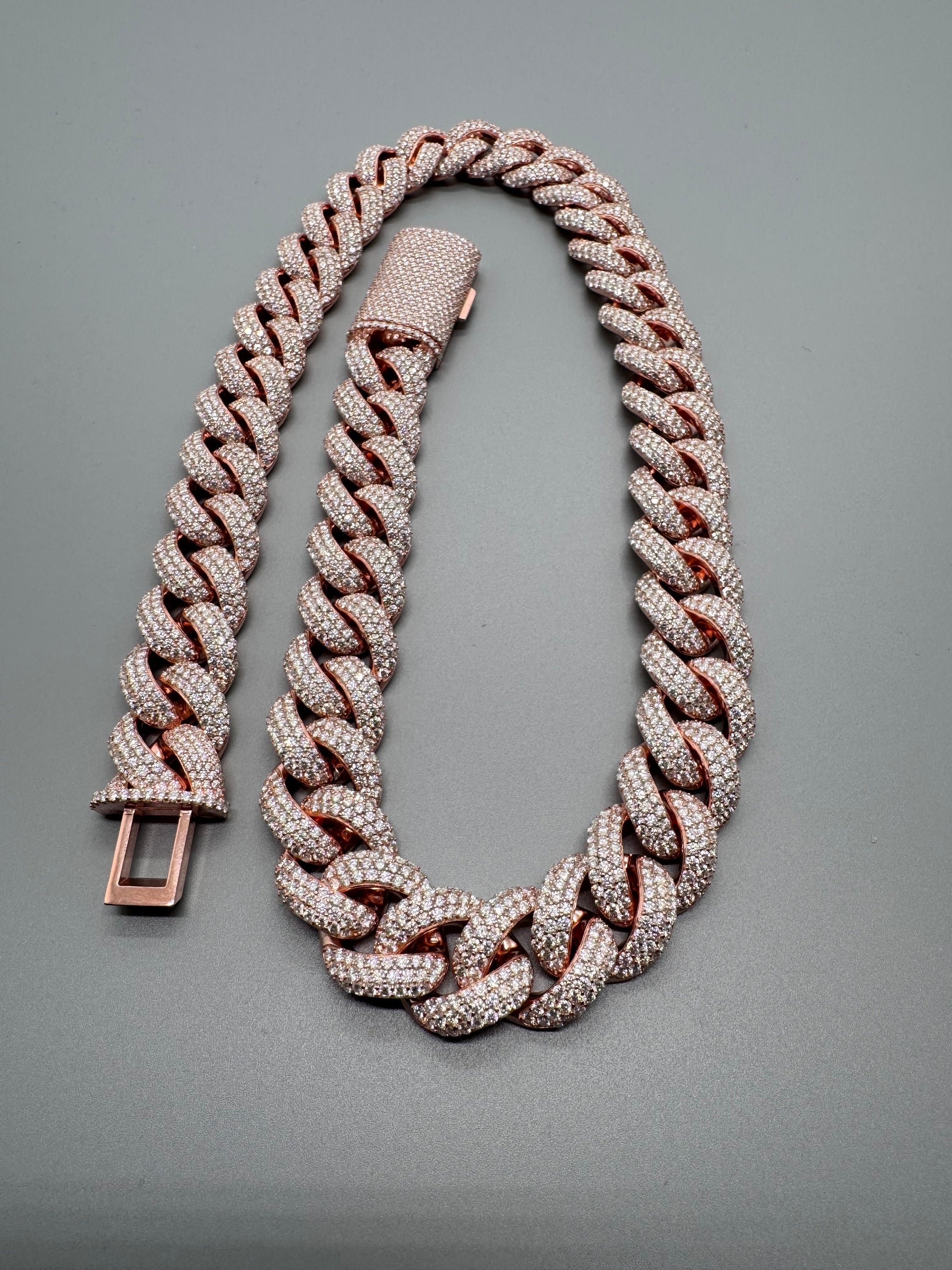 Luxury Meets Heat – 18MM VVS1 Moissanite Rose Gold Cuban Chain