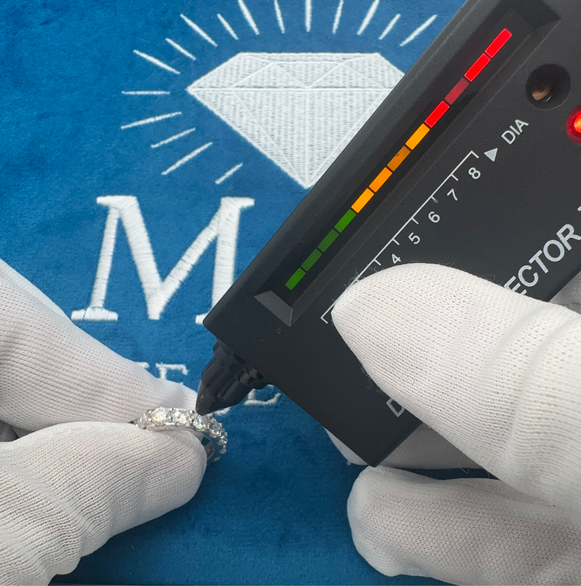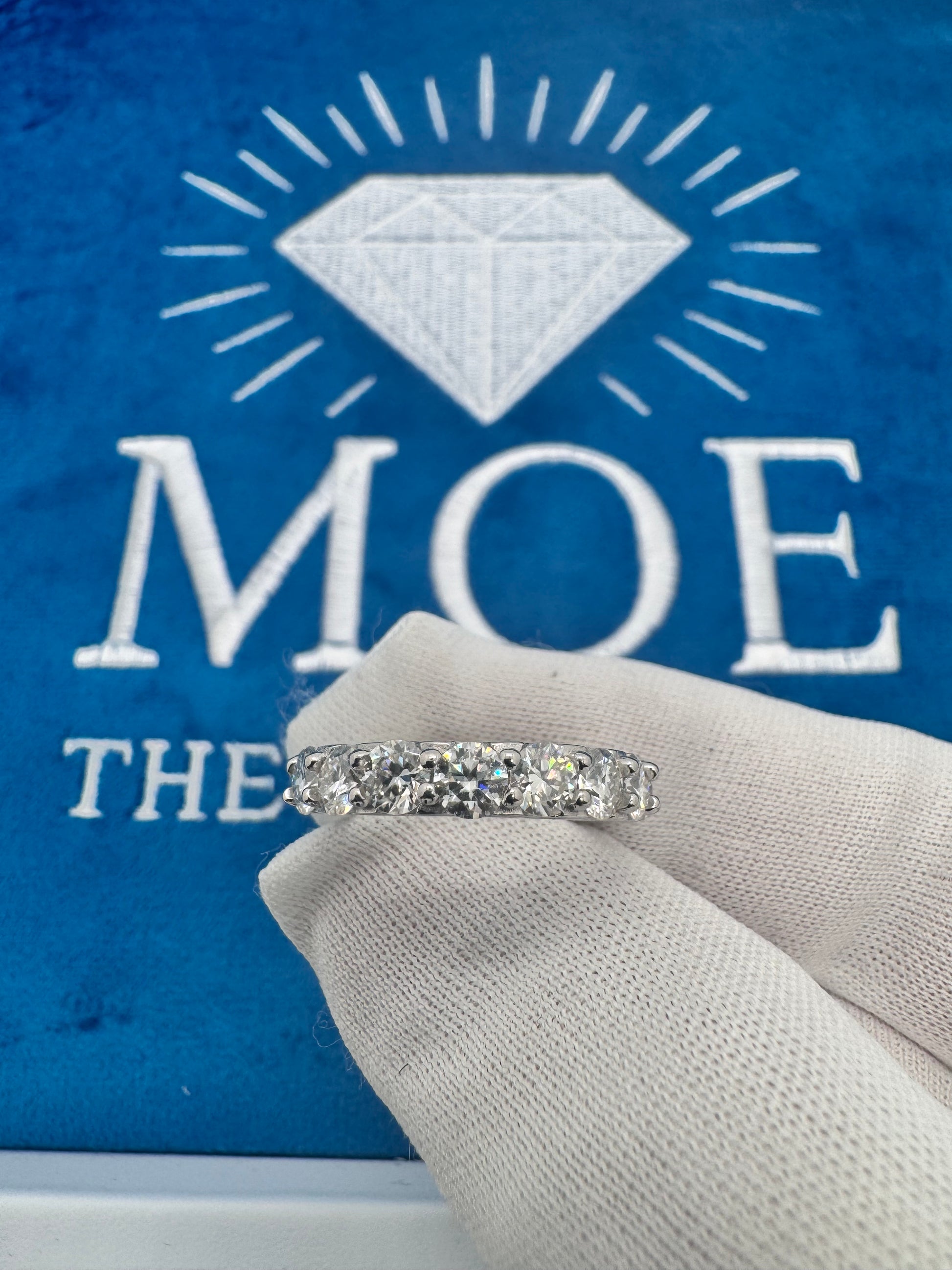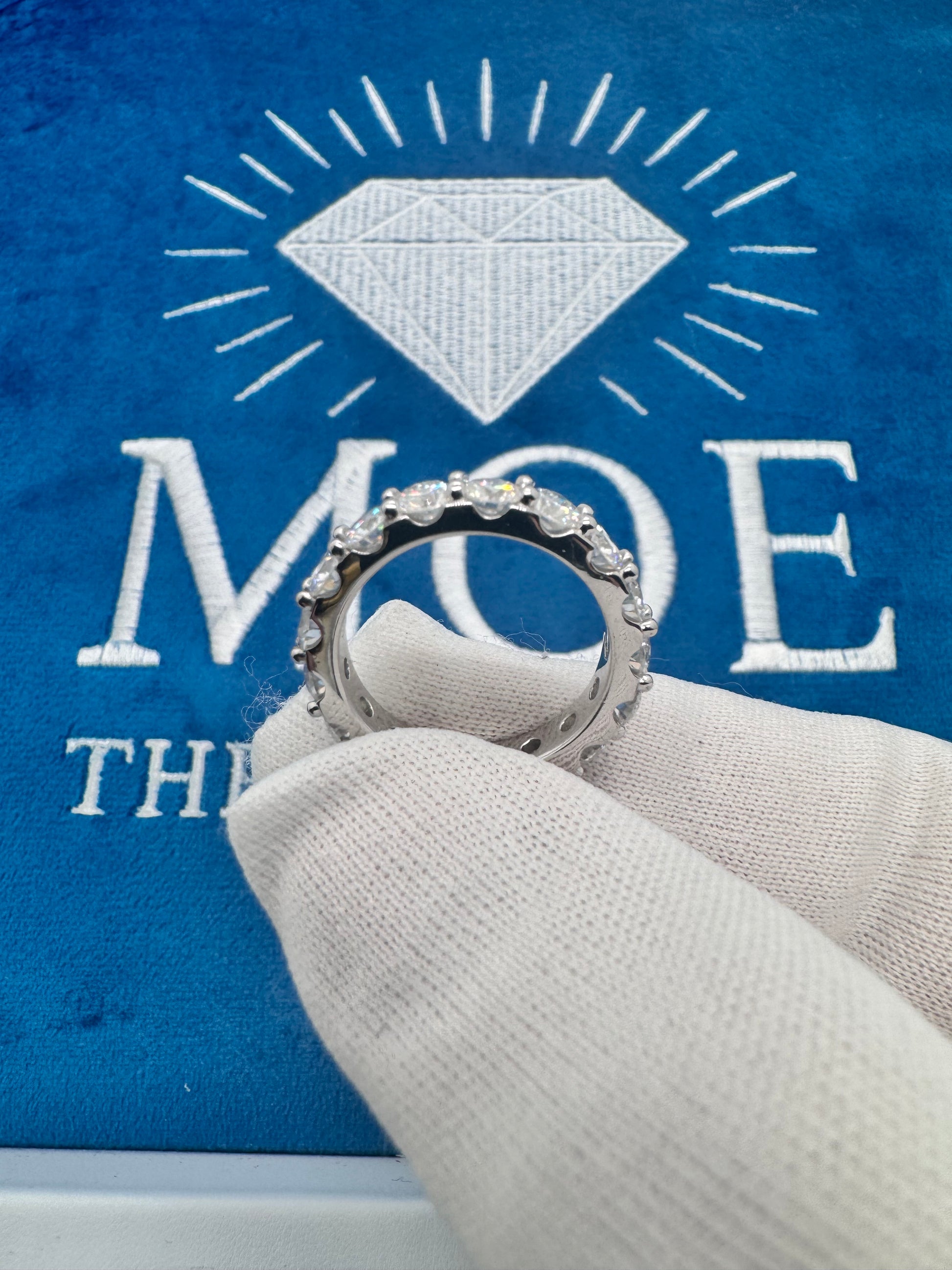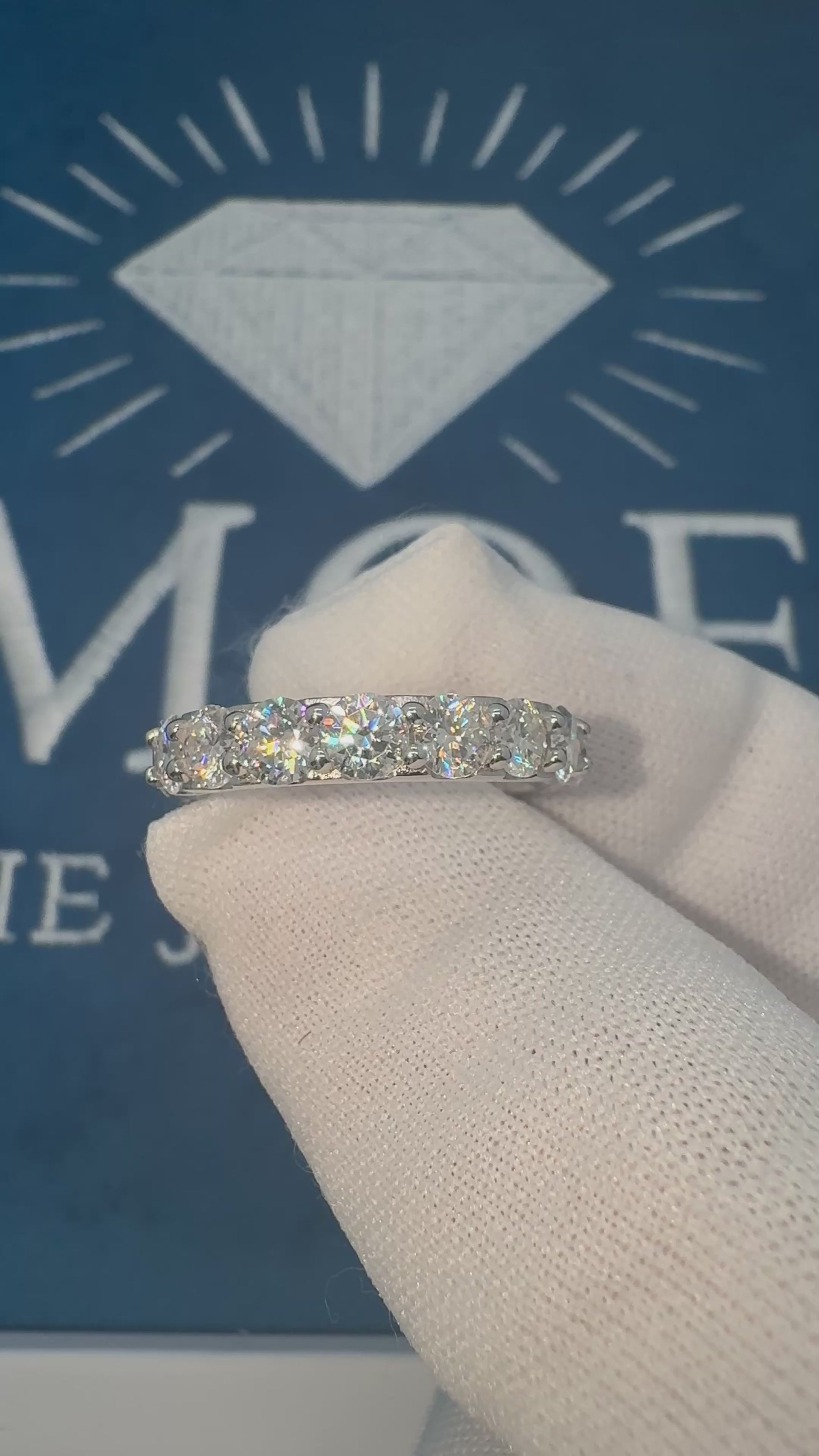 Shine with unmatched brilliance. This stunning VVS1 Moissanite band ring is crafted in premium .925 sterling silver, designed to deliver the luxury look of diamonds at an affordable price. Each round brilliant-cut Moissanite stone is hand-set for maximum sparkle, fire, and durability.
