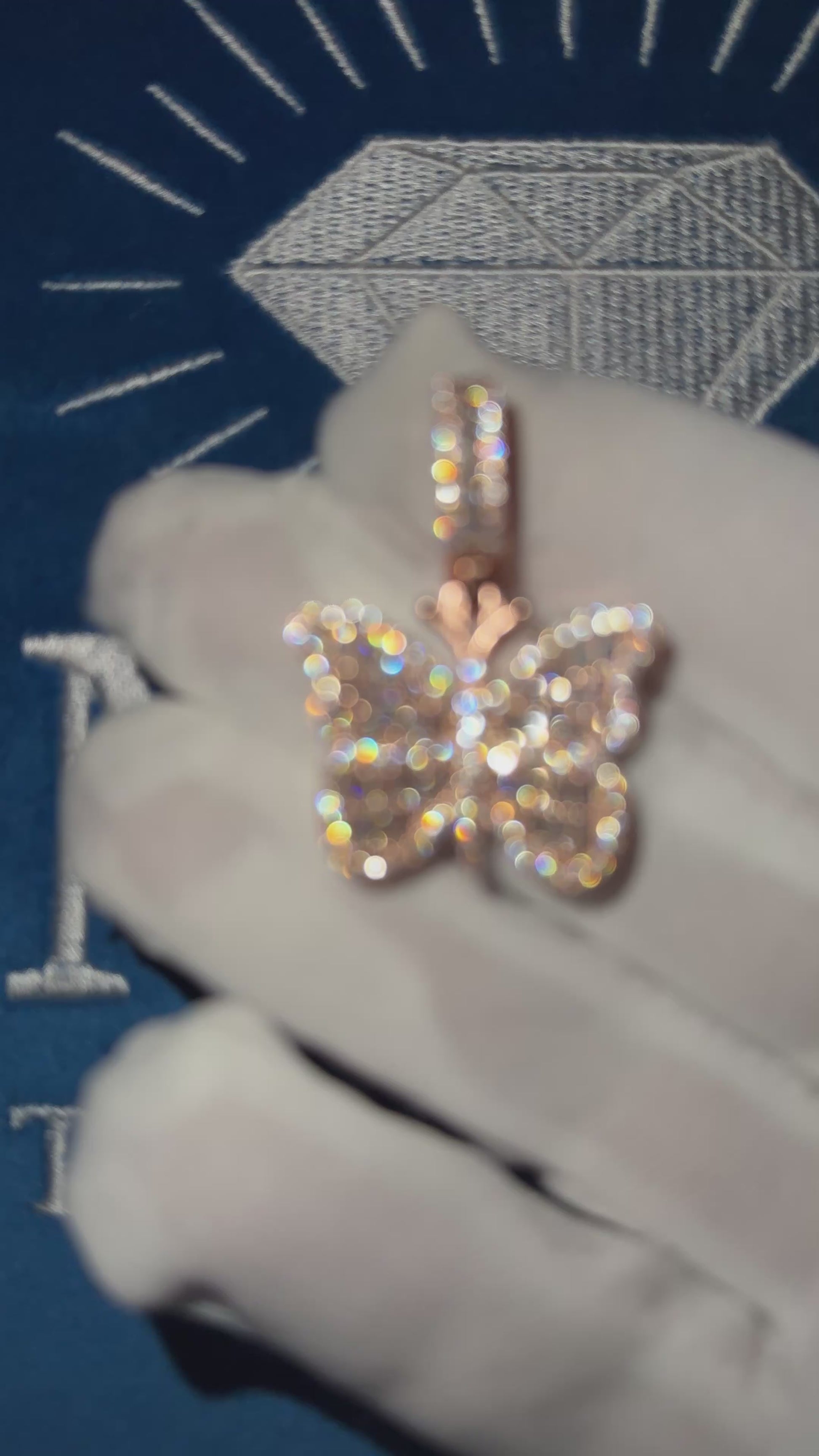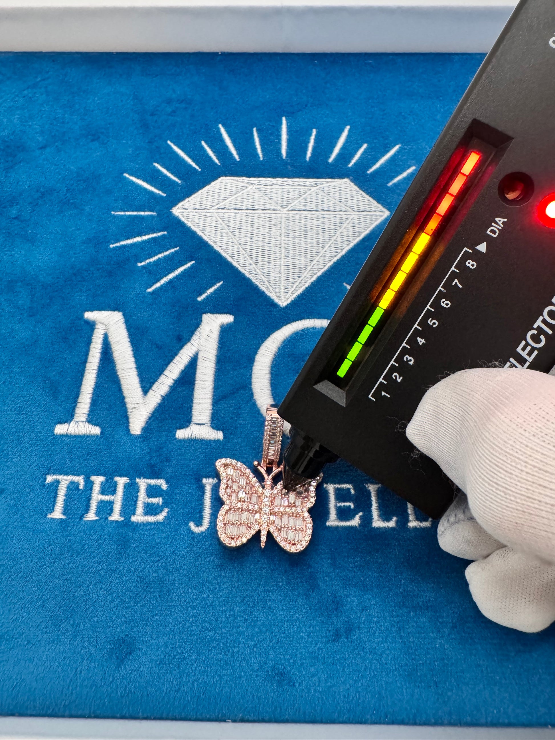 - VVS1 Moissanite Butterfly Pendant – Real .925 Silver + 14K Rose Gold Plating