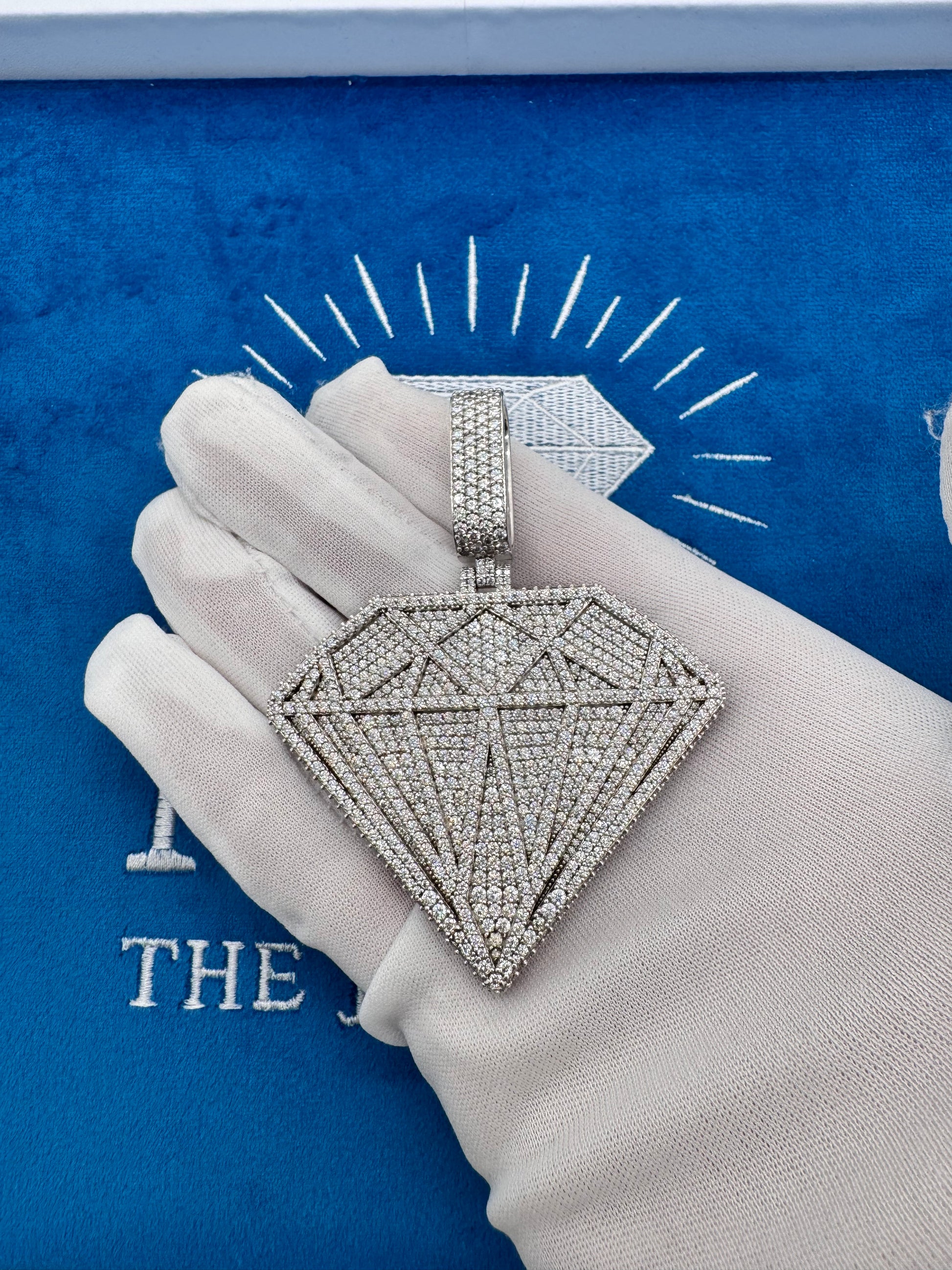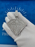 Level up your jewelry game with this fully iced VVS1 Moissanite “Diamond” Pendant, crafted in genuine .925 sterling silver for a premium, long-lasting shine. This piece is designed to turn heads with its bold geometric diamond silhouette, covered in hand-set stones that explode with brilliance from every angle.